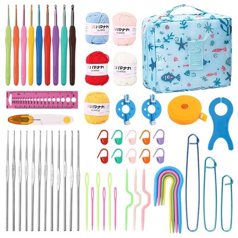 127 Set di uncinetti set kit da cucito intrecciato a mano fai da te con abbigliamento per attrezzi all'uncinetto per principianti in lana