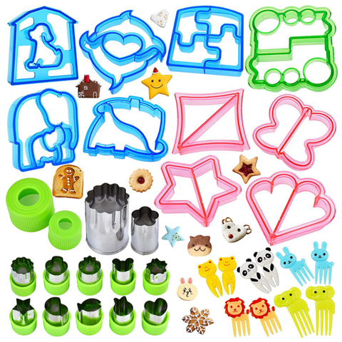 ชุดตัดคุกกี้และผลไม้ทำจากสเตนเลสสตีล32ชิ้นอุปกรณ์ทำแซนวิชพลาสติกอาหารกลางวันสำหรับเด็กอุปกรณ์ทำเค้กแบบดร็อปชิปปิ้งสนุกๆ