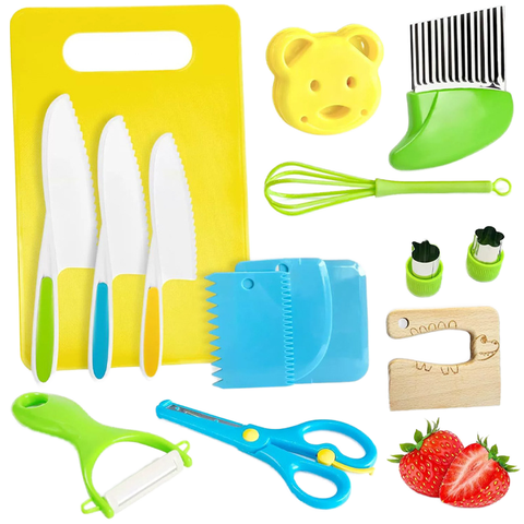 17 Pcs Trẻ Em Bằng Gỗ Dao Nhà Bếp, Trẻ Em Knife Set Với Găng Tay Thớt Hội Đồng Quản Trị Gấu Bánh Sandwich Cắt Trái Cây Rau Cắt răng cưa